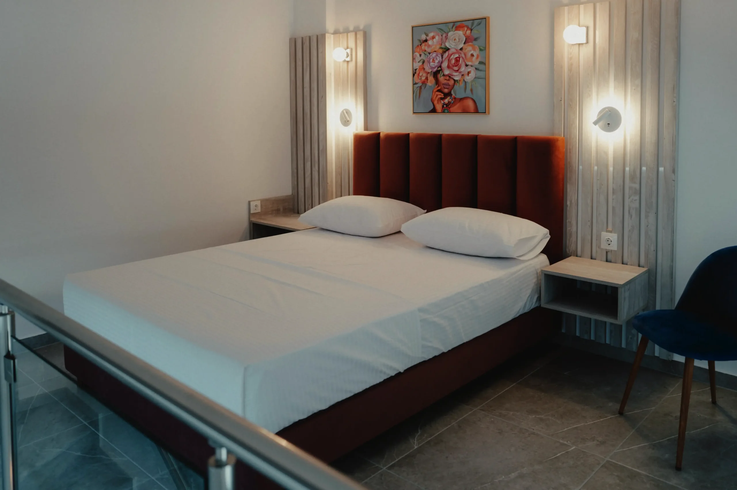 This spacious maisonette with double bed and a sofa features a pool with a view as its standout feature. Guests can prepare meals in the well-equipped kitchenette, which includes a stovetop, refrigerator, and kitchenware. The room also offers air conditioning, a tea and coffee maker, a seating area, and a terrace with garden views. The private bathroom comes with a walk-in shower.
